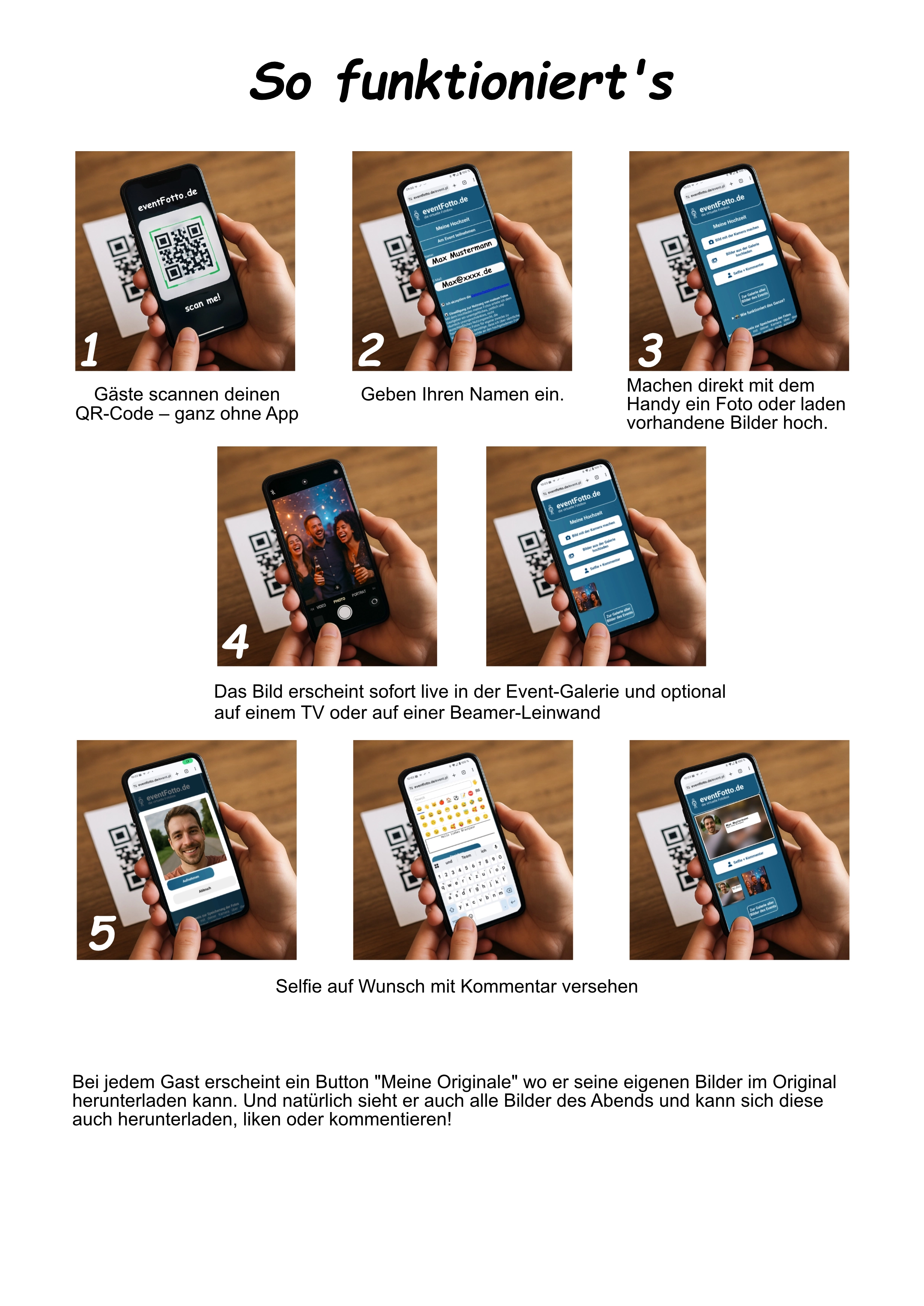 Ja, alle Bilder der klassischen Fotobox werden ebenfalls in deiner Galerie angezeigt – jedoch erst am Tag der Abholung. So bleibt die Überraschung auf dem Event erhalten.